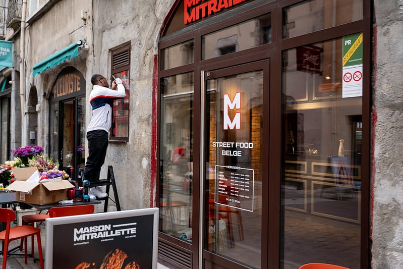 Maison Mitraillette, restaurant spécialisé dans le sandwich mitraillette belge à Grenoble, souhaitait renforcer sa visibilité en façade et affirmer son univers visuel dès le premier regard. L’objectif : capter l’attention des passants tout en traduisant l’identité gourmande, jeune et dynamique du lieu.Nous sommes intervenus pour la pose de vitrophanies comprenant le logo, les horaires d’ouverture, […]